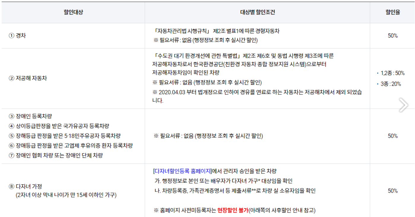 - 두 개 이상의 할인 사유에 해당하는 경우 이용자에게 유리한 1개의 할인 사유만 적용됩니다.